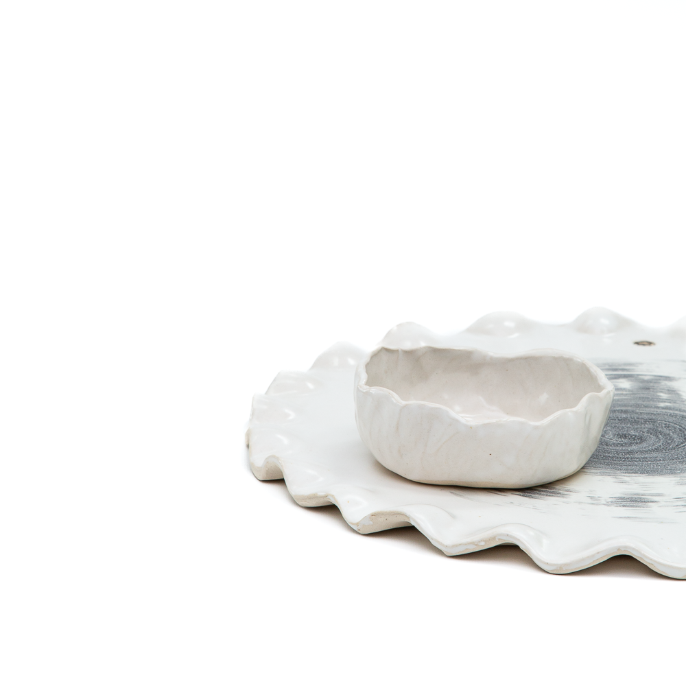 Inspired by the gentle rhythm of ocean waves, the platter features scalloped edges that look effortlessly chic and bring quiet elegance to any space. The edge is shaped by gently guiding the clay, one deliberate motion at a time—a slow, meditative process that ensures no two pieces are ever alike.