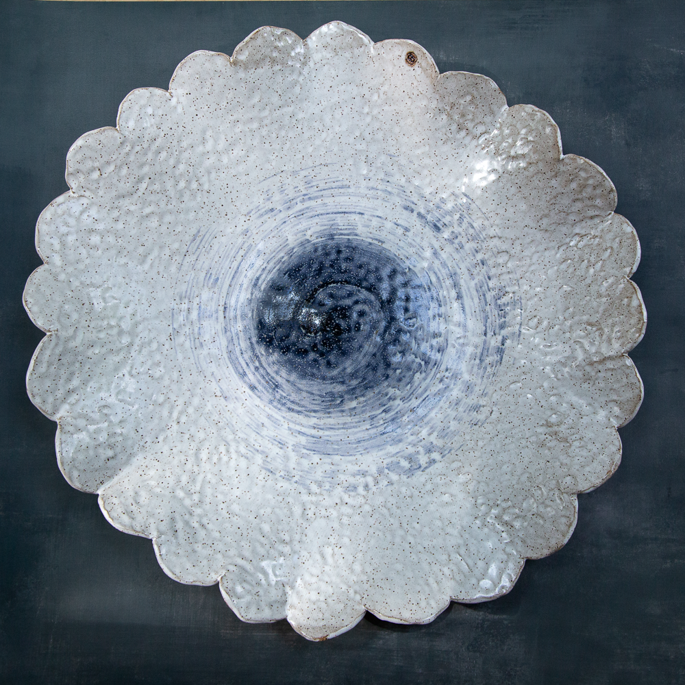 Scalloped like a wild daisy in the breeze, this piece is grounded in warm earth tones and designed to bring the outdoors in.