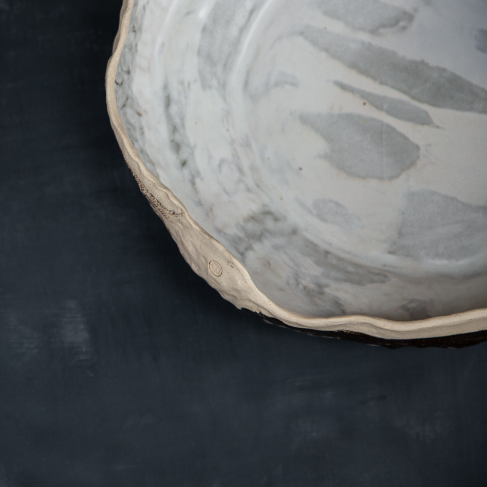 Note: The bottom section of each piece has been kept unglazed for aesthetics and is NOT food safe.