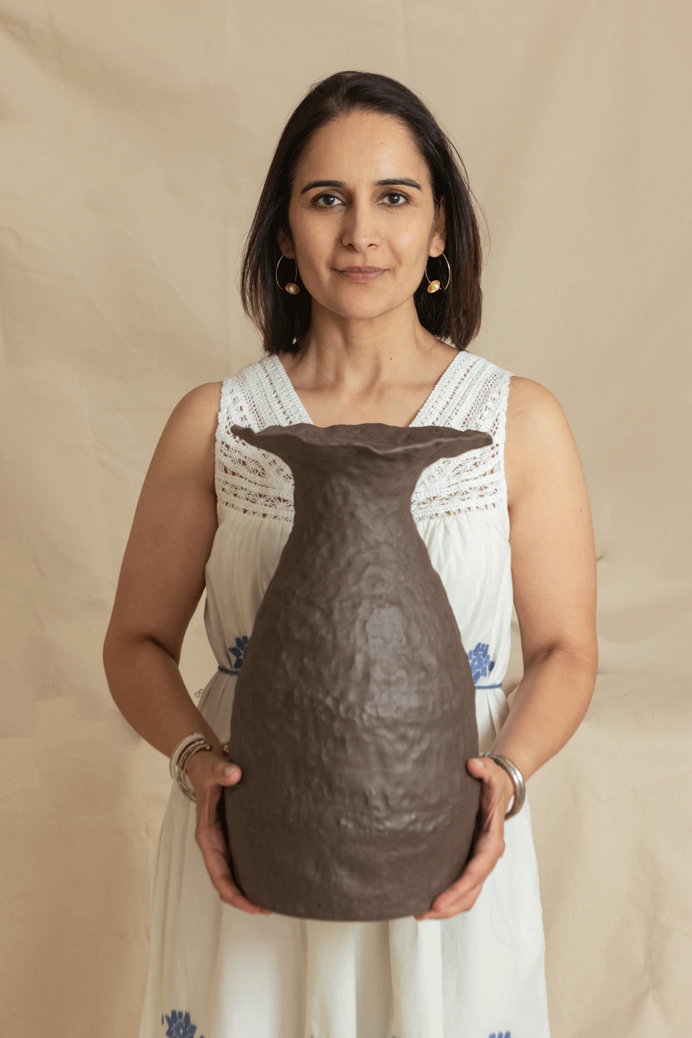 As I build, I like to preserve every mark and fingerprint — subtle traces of the process that quietly tell the story of how each piece came to be. The interior is finished with a clear glaze, making it waterproof and functional as a vase, while the exterior remains unglazed to honor the raw beauty of the clay itself.